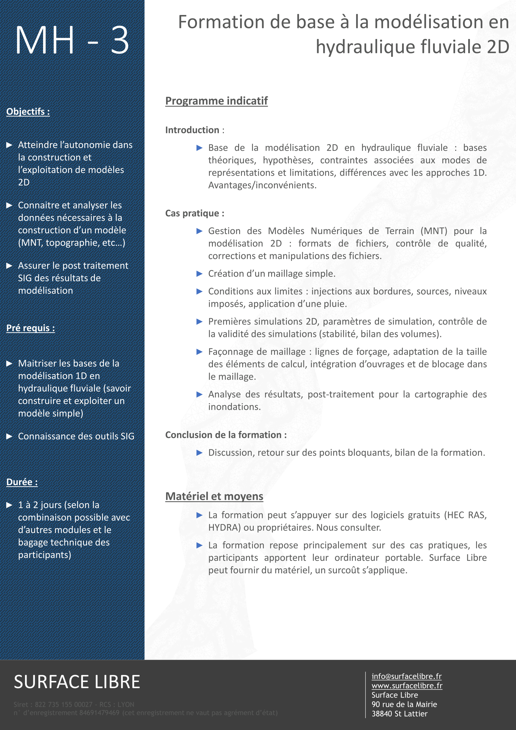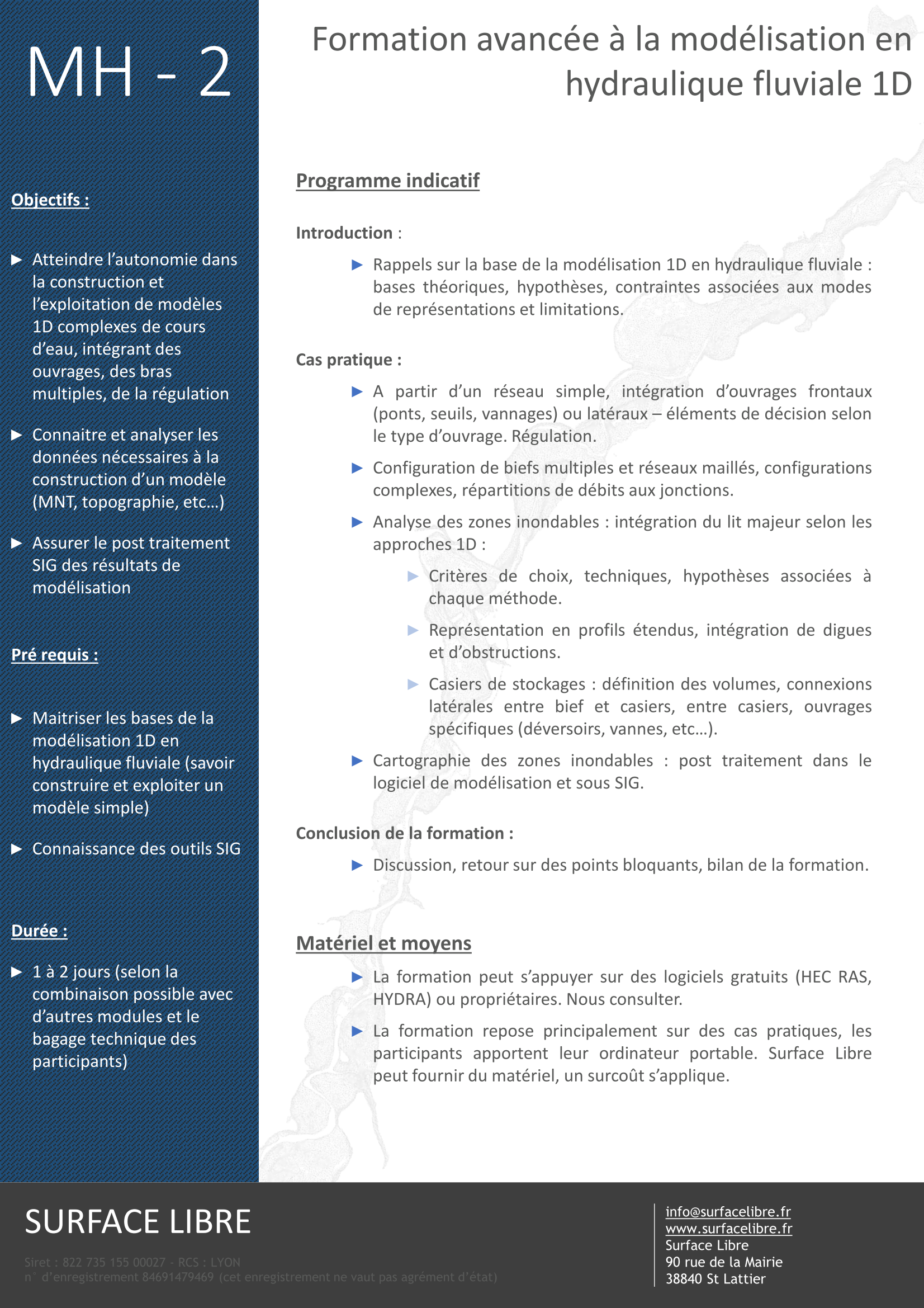 • Formation initiale à la modélisation en hydraulique fluviale ou urbaine :