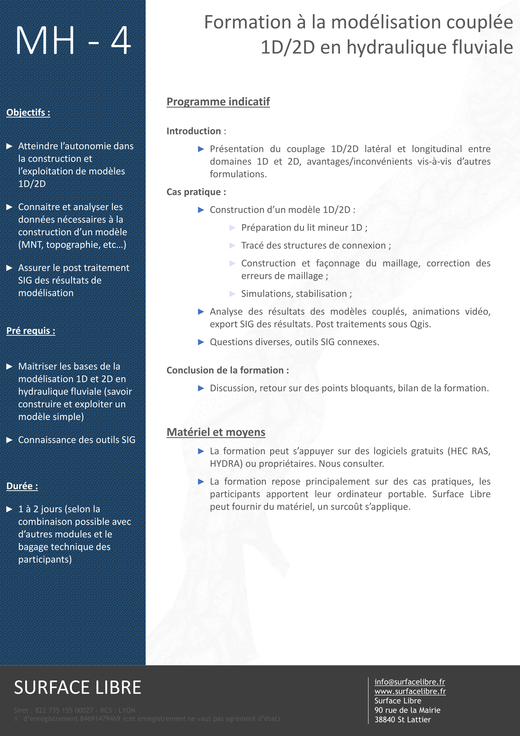catalogue formation Surface libre